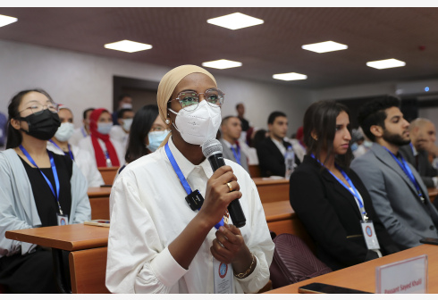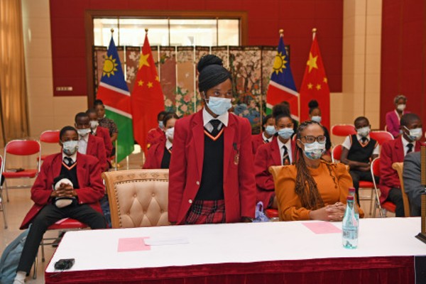 WINDHOEK, Sept. 7 — A Senegalese student asks a question to China’s Shenzhou-14 taikonauts during the event titled “Talk with Taikonauts” in Windhoek, Namibia, Sept. 6, 2022.