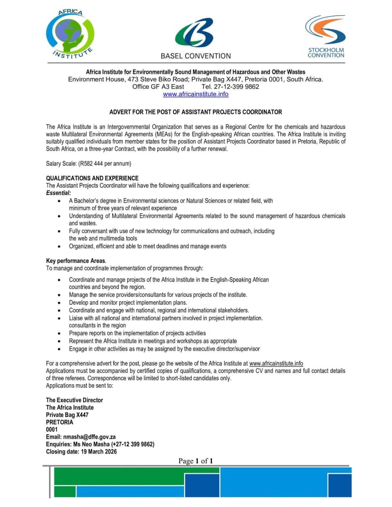 Home FeatureAdvertise Now Hiring: Assistant Projects Coordinator (Pretoria, South Africa)